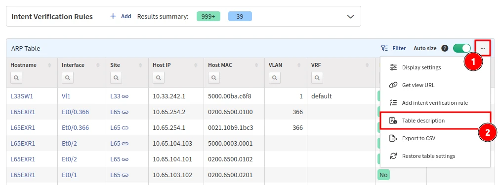 As an example, the ARP Table (in Technology → Addressing → ARP Table) is used below to demonstrate the functionality of tables.