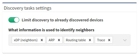 When Limit discovery to already discovered devices is enabled, IP Fabric also