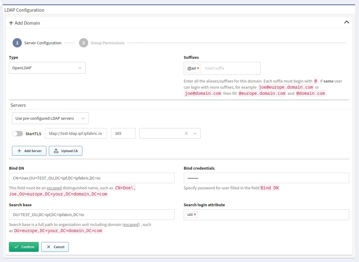 Use pre-configured LDAP servers.2. Specify the full FQDN (including domain) or IP address of the LDAP server, including the protocol prefix. For example,