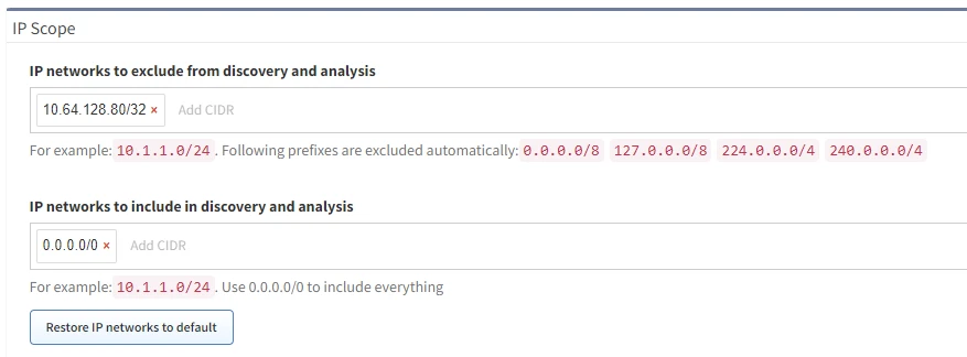 process. The default is set to include everything (0.0.0.0/0). When IP Fabric