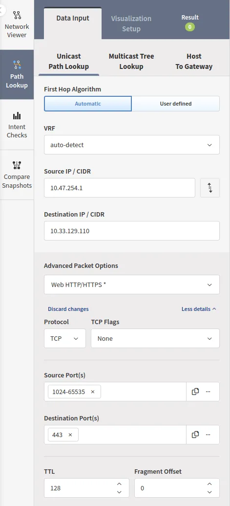 The host-to-gateway path can be found in Diagrams → Host to gateway path or in any diagram using the Path Lookup menu on the left and selecting Host To Gateway (see the picture below).