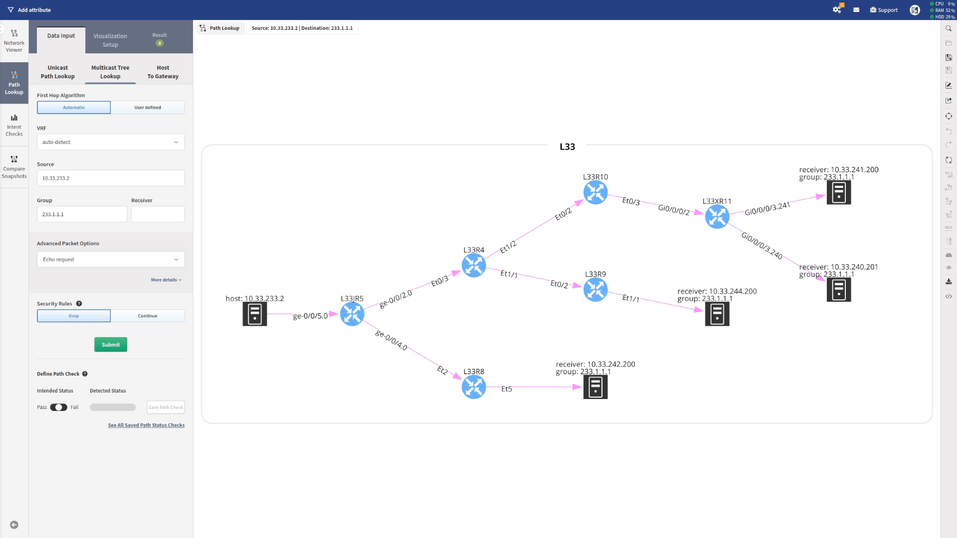 It can be very useful to have a quick look at the topology and observe what has changed from one snapshot to another. To compare, you just need to click Compare Snapshots and select the snapshot you want to compare your current snapshot with, and you will see the result.