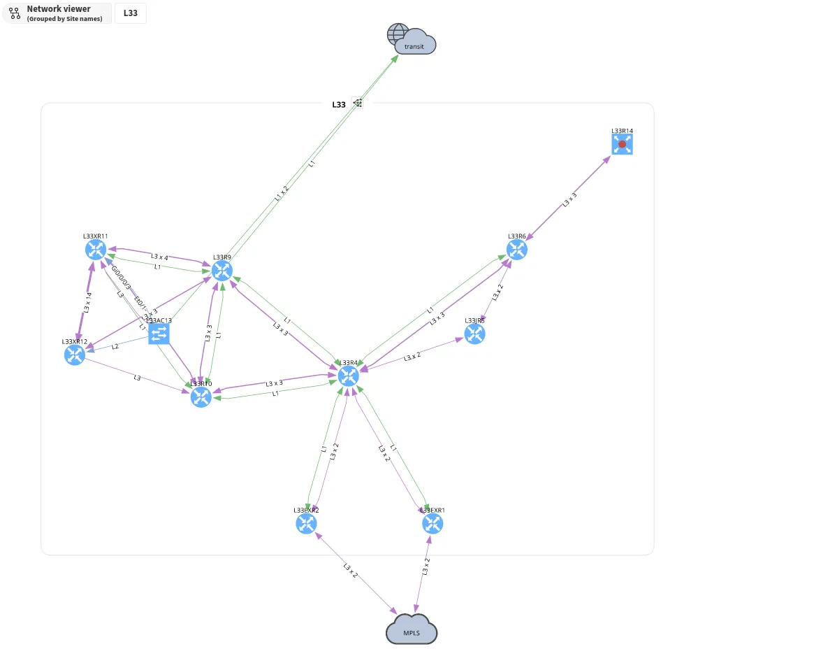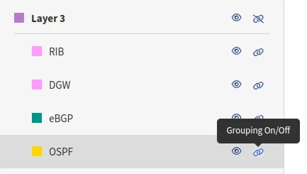 Layer grouping collapses groups of devices according to the types of links that connect these, either in Layer 2 or 3 groups. Devices connected with different layer protocols can’t be grouped together.