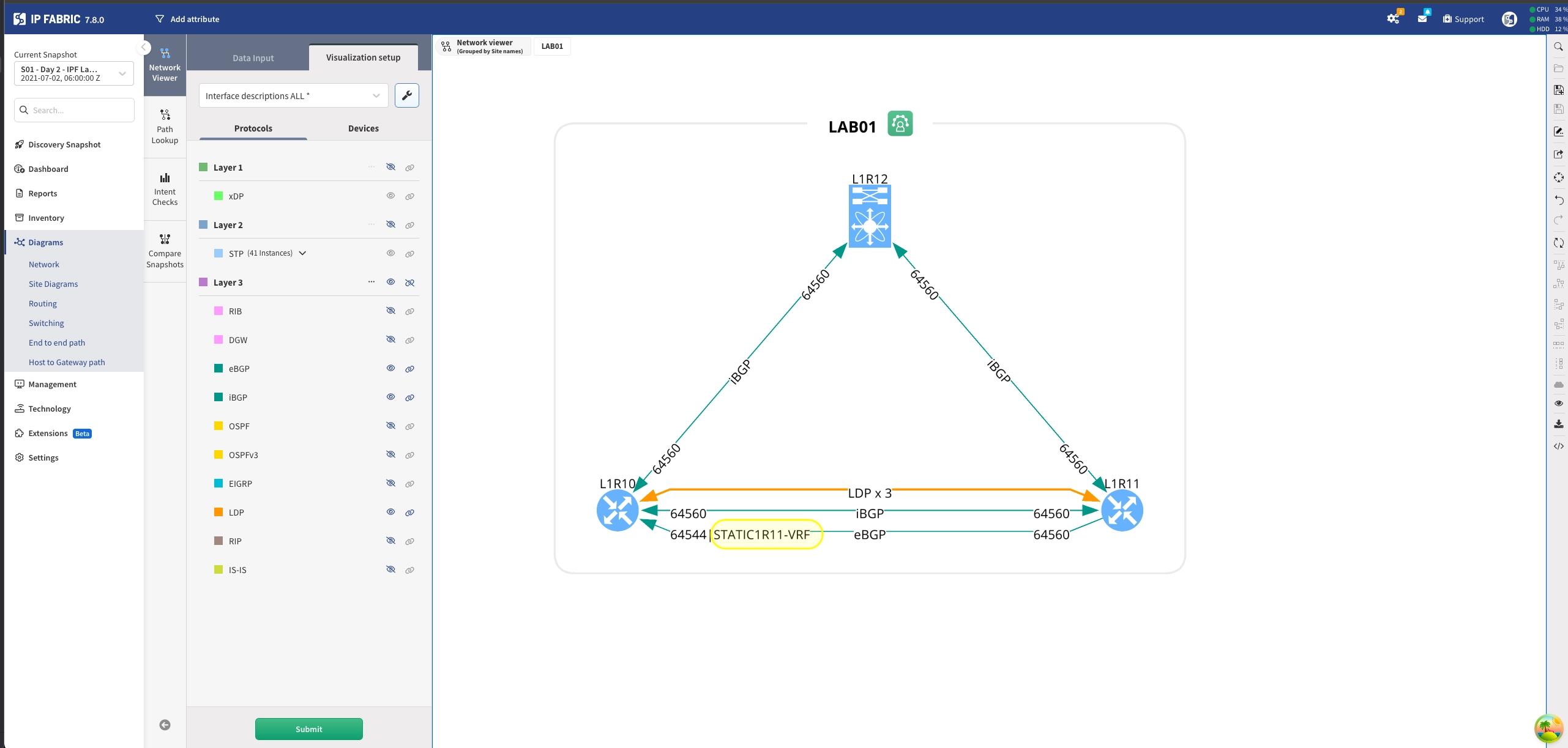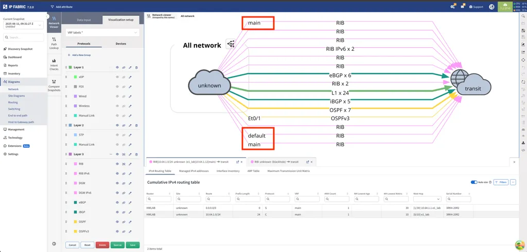 VRF labels are now shown as line-cap labels on topology graph edges for Layer 3 protocols, making it easier to identify VRF associations directly in the graph.