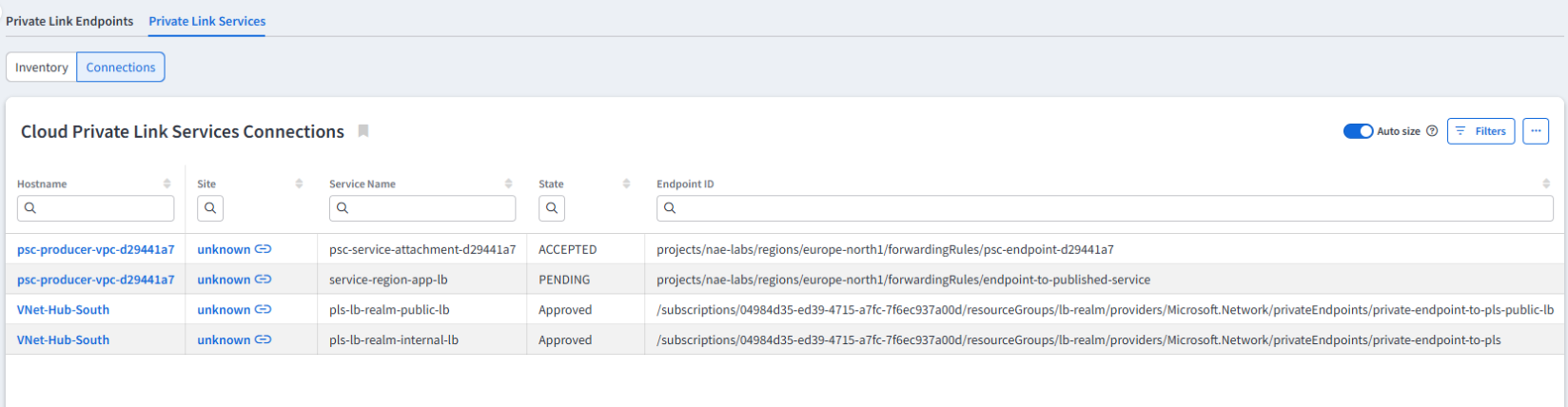 Private Link The Private Link section offers a comprehensive overview of all discovered private link endpoints, private link services, and their associated connections. Was this page helpful? Thanks for your feedback! Thanks for your feedback! Help us improve this page by using our support portal.