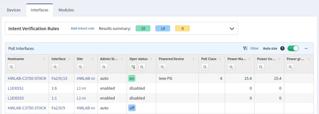 can be used to check the PoE interface status on a particular device. The Admin