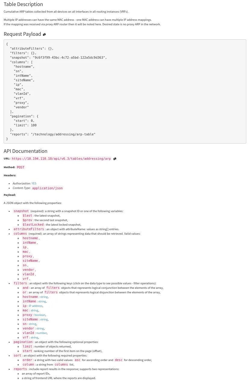 Filters will change what is displayed in the table, the exported CSV data, and the API documentation found in the Table Description.