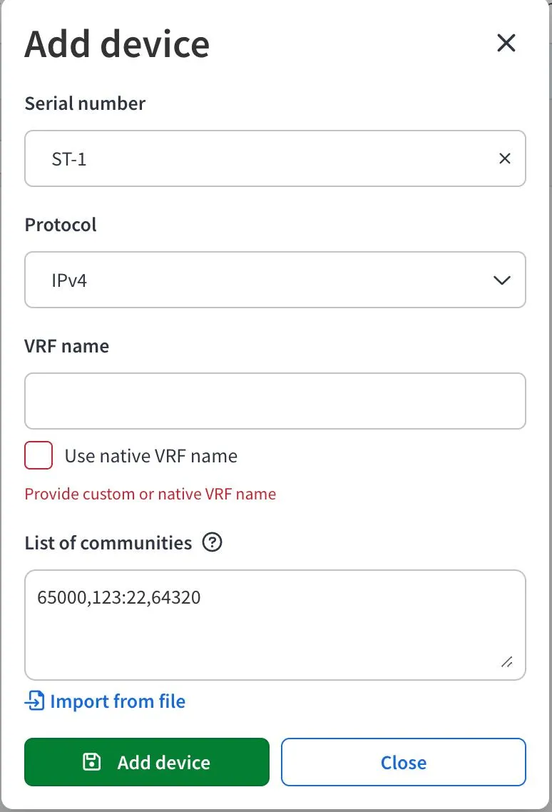 - List BGP communities (or import them from file)