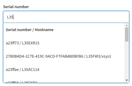 The dropdown is intuitive and will let you search based on SN or hostname.