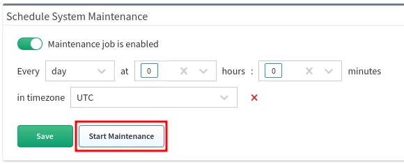 Sometimes, it is necessary to run maintenance manually; this can be done with the Start Maintenance button: