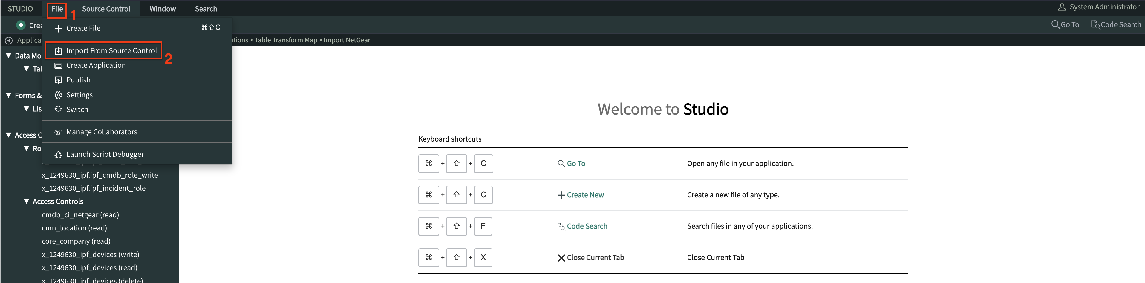 This section requires access to the System Application Studio in ServiceNow. Please reference ServiceNow’s documentation on Importing an Application from Source Control for required roles and more information.