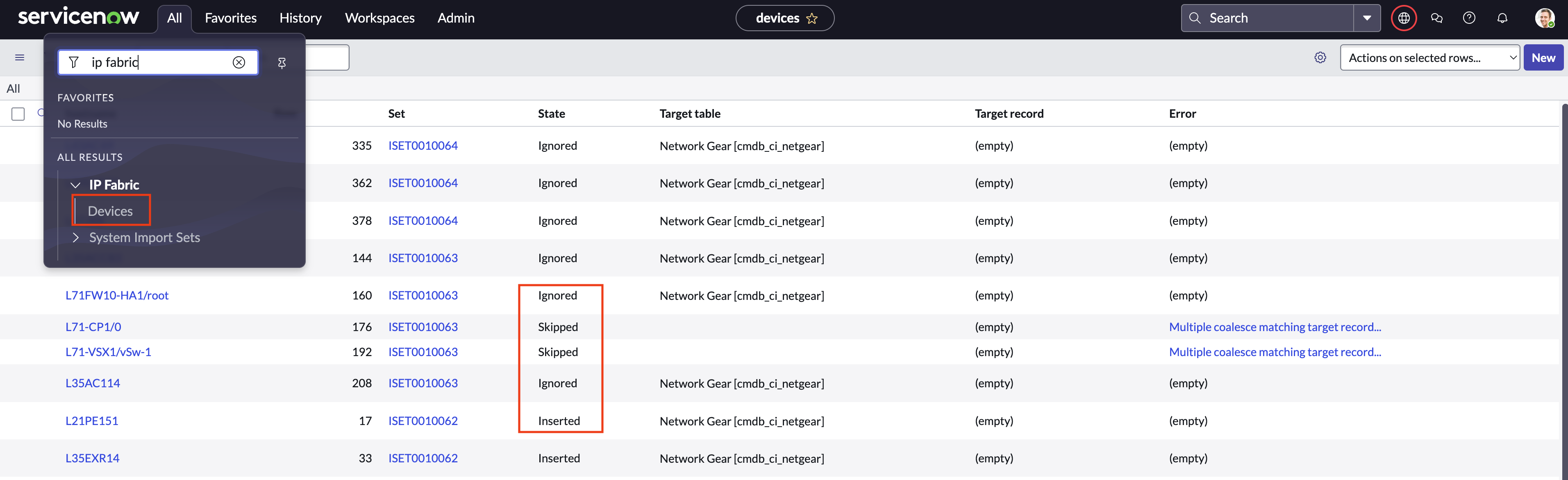 The application will install a import set table called Devices, which is viewable under the IP Fabric application menu.