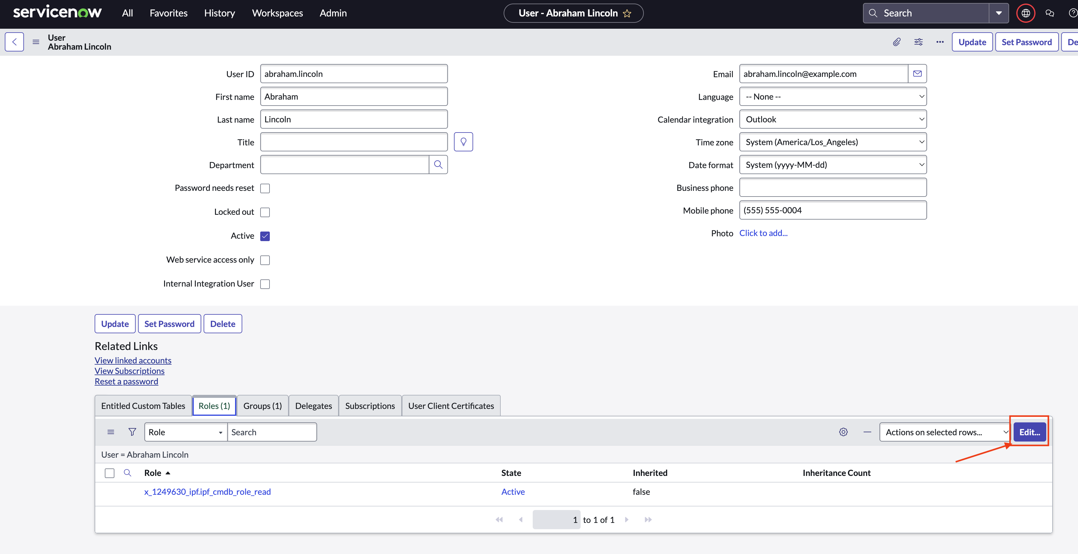 Select the user you wish to grant access to the IP Fabric application, and edit the user’s roles: