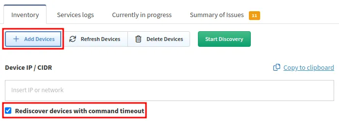 already discovered devices is not enabled in the Discovery tasks