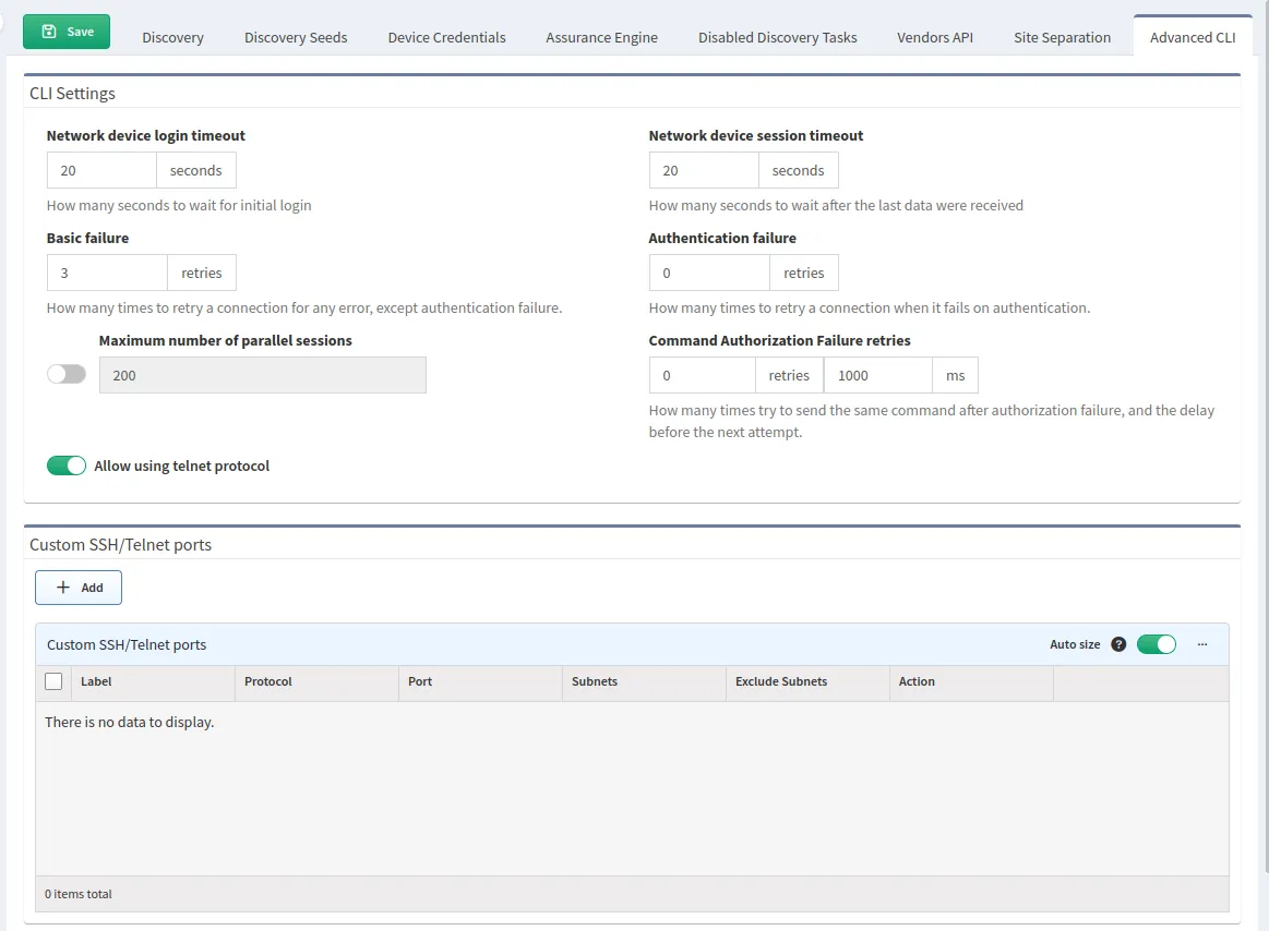Location: Settings → Discovery & Snapshots → Discovery Settings → Advanced CLI