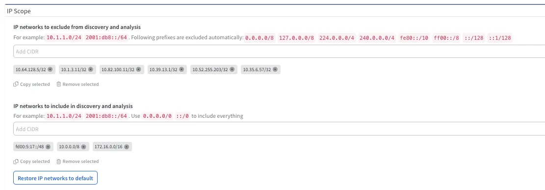 process. The default is set to include everything (0.0.0.0/0 and ::/0). When IP Fabric