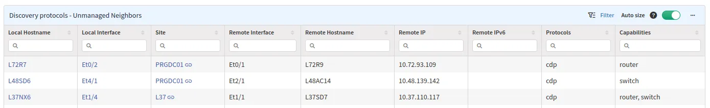 CDP/LLDP → Unmanaged neighbors