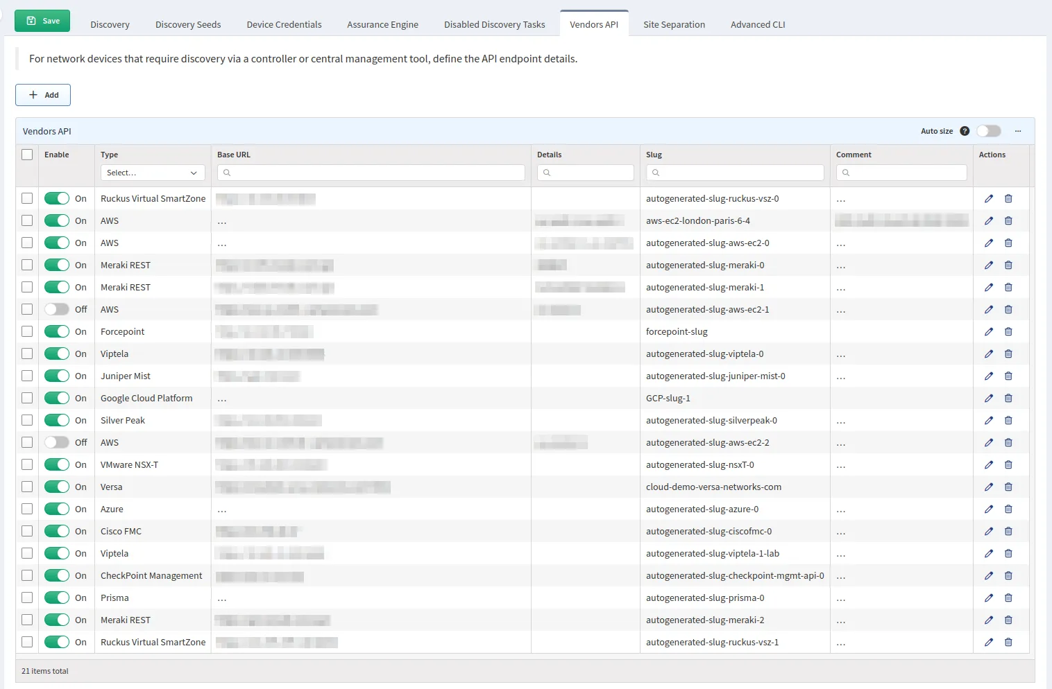 Location: Settings → Discovery & Snapshots → Discovery Settings → Vendors API