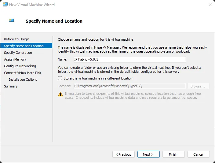 VM generationto eitherGen 2orGen 1as desired.Gen 2is required for NVMe. Both are supported by IP Fabric. - Browse the