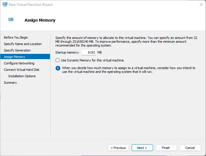 - You may use Dynamic Memory or assign fixed memory.