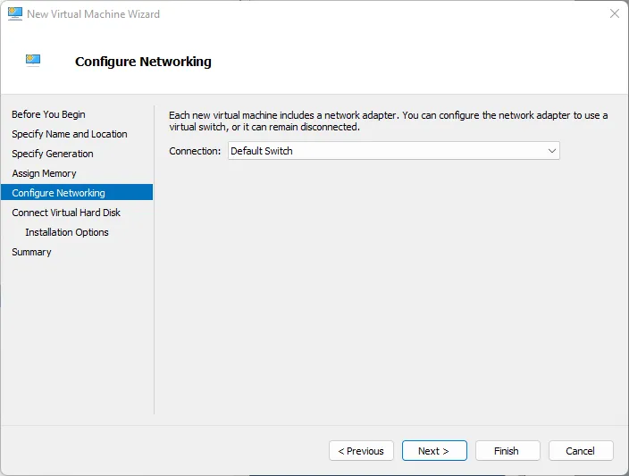 In Configure Networking, select the appropriate Virtual Switch.
