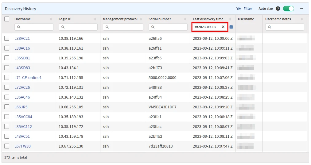 Perhaps your team wants to delete all discovery history older than 1 month to speed up the discovery process. The picture below shows using a Last discovery time filter to check for entries <= to a certain date.