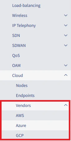 The Vendors section provides vendor-specific inventory tables for three cloud providers – AWS, GCP, and Azure. Each vendor’s inventory table presents slightly different information to reflect the unique characteristics of their resources.