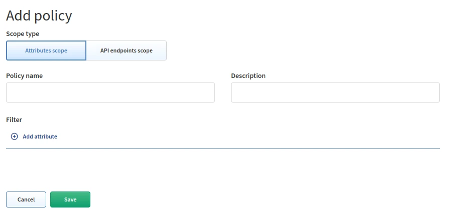 Set a policy name, add attributes (create filters), select values, and click Save: