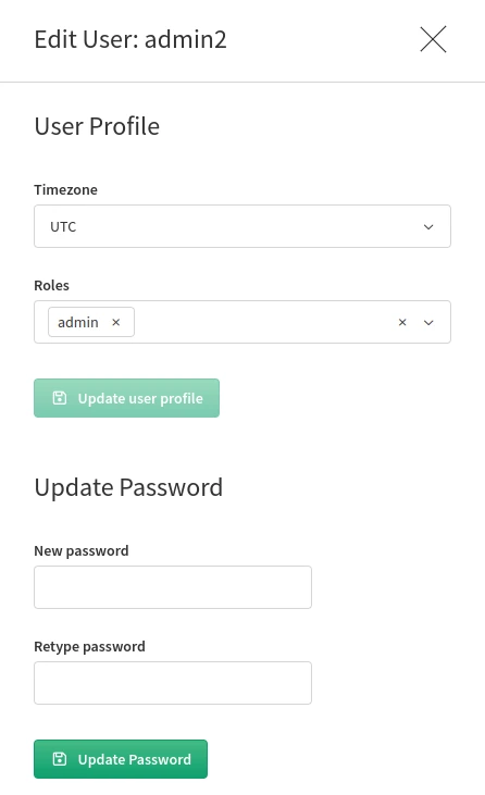 Then, to modify the user’s details, update the data in the User Profile form and click Update user profile: