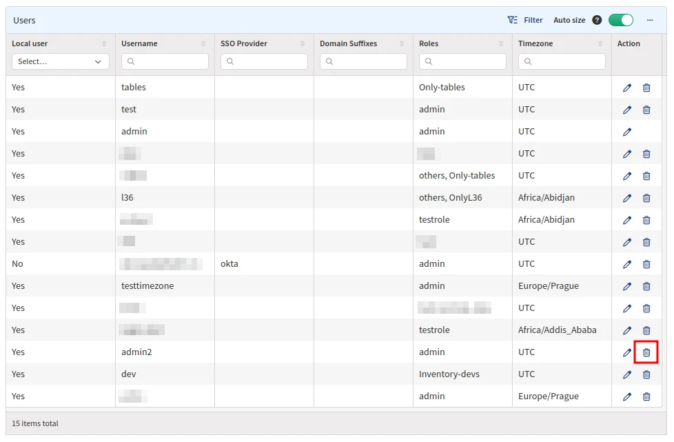 Userstable and click the Edit icon. (Optionally, you may selectNoin theLocal usercolumn header to show only non-local users.) -