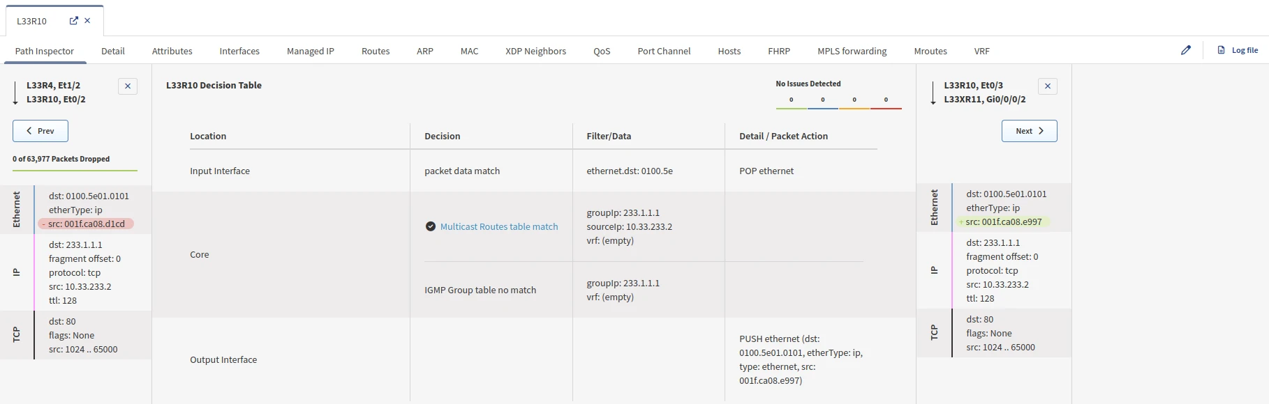 And you will have access to a lot of information regarding the Multicast forwarding decision:
