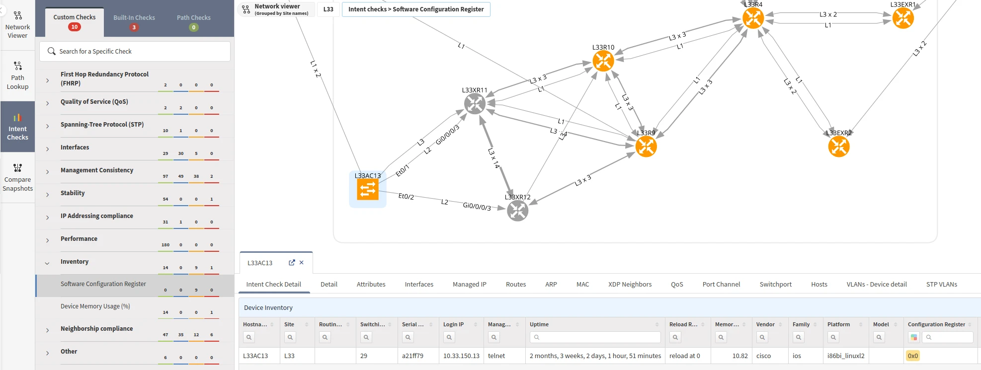 - All the intent verification rules in IP Fabric – the default checks and the ones you have created.