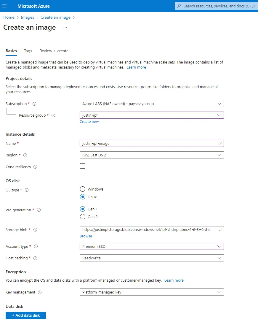 SubscriptionandResource group. - Name the image.