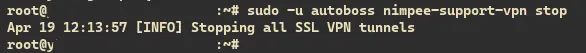 sudo -u autoboss nimpee-support-vpn stop