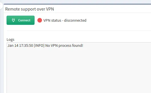 Select Remote support VPN in Support menu