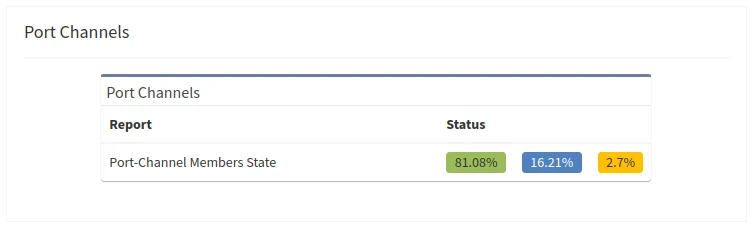 Port Channels. - Find an intent verification rule and add it to the widget. For example, Technology → Port channels → Member status table → Link Aggregation (LAG)/Portchannel/Etherchannel Member status table → Port-Channel Members State.