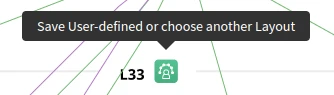 After editing the layout, you will see the green box. This allows you to save the changes as the default view. Click the green box; this will open a menu Select Diagram Layout Settings, and the last entry is the User-Defined Layout. By clicking the Floppy disk icon, you will update the default view (see below). Please be aware that only the position of the visible nodes will be saved.