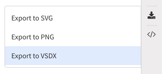 The view can be exported in the form of a SVG, PNG image, or VSDX file by clicking Export and selecting the format you want. The pre-defined name of the file is auto-generated based on the network name, number of shown networks, IP addresses, or name of the saved view.