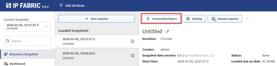 There can be numerous reasons why IP Fabric did not discover a device from Day 0: incorrectly configured devices, AAA outage, insufficient authorization privileges, just to name a few. First, we will look at some tables to help you find these and then show how to use the Connectivity Report to debug them.