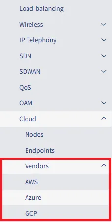 The Vendors section provides vendor-specific inventory tables for three cloud providers – AWS, GCP, and Azure. Each vendor’s inventory table presents slightly different information to reflect the unique characteristics of their resources.