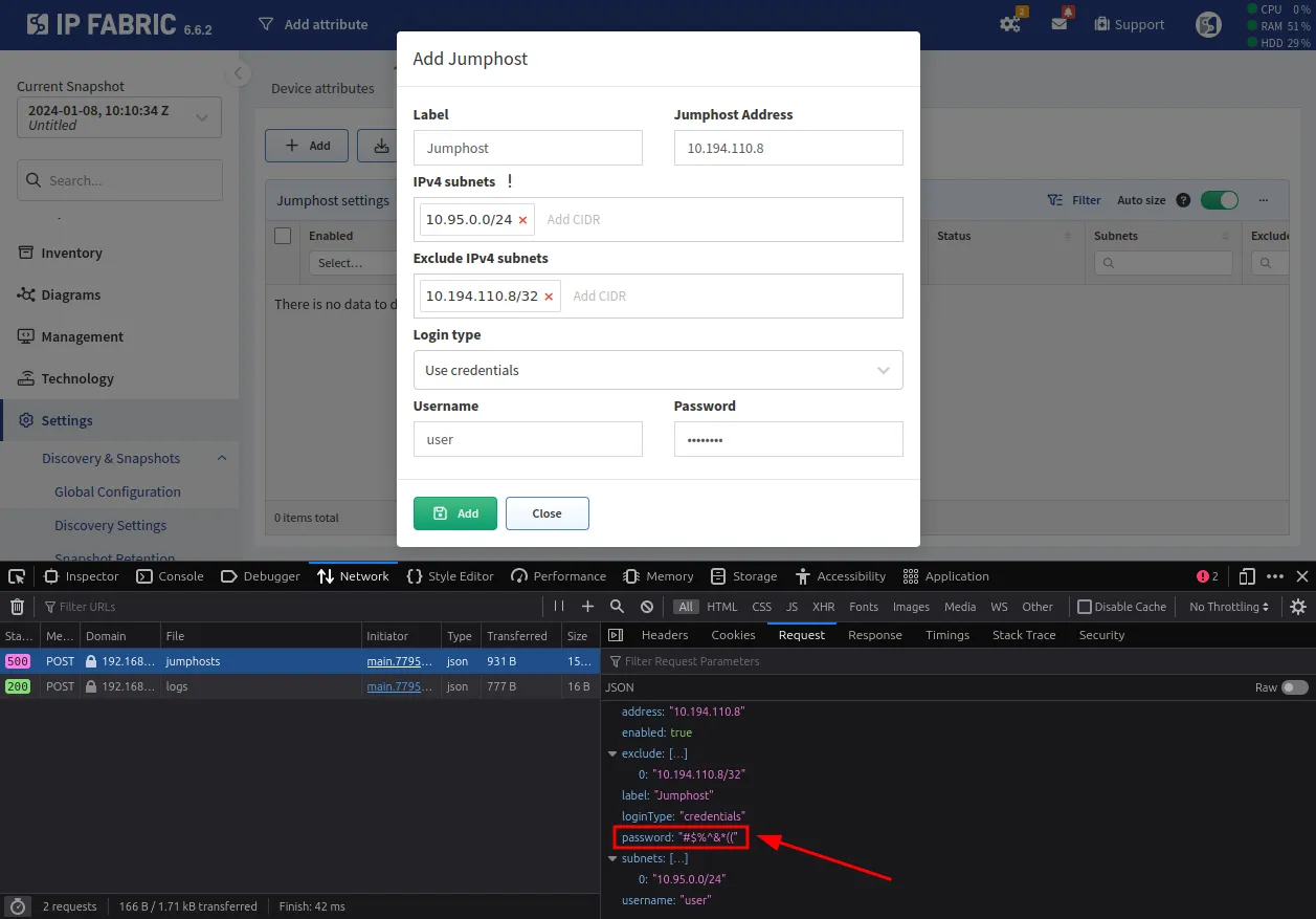 In our example, the error message was thrown because restricted characters were present in the jumphost’s Password field: