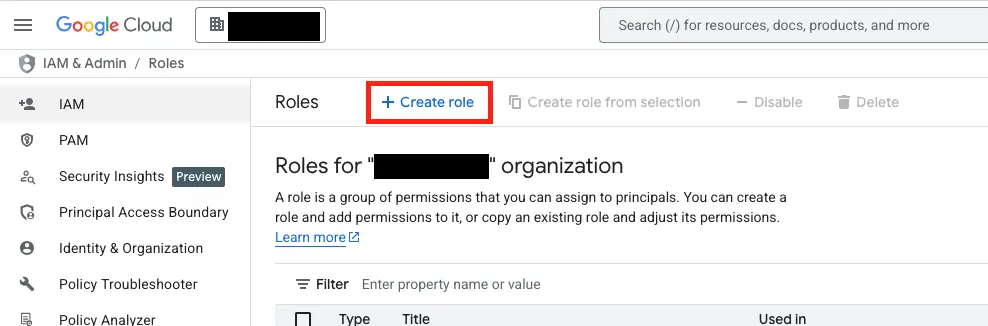 Navigate to IAM & Admin → Roles: