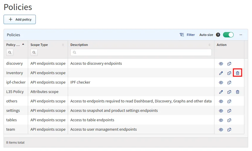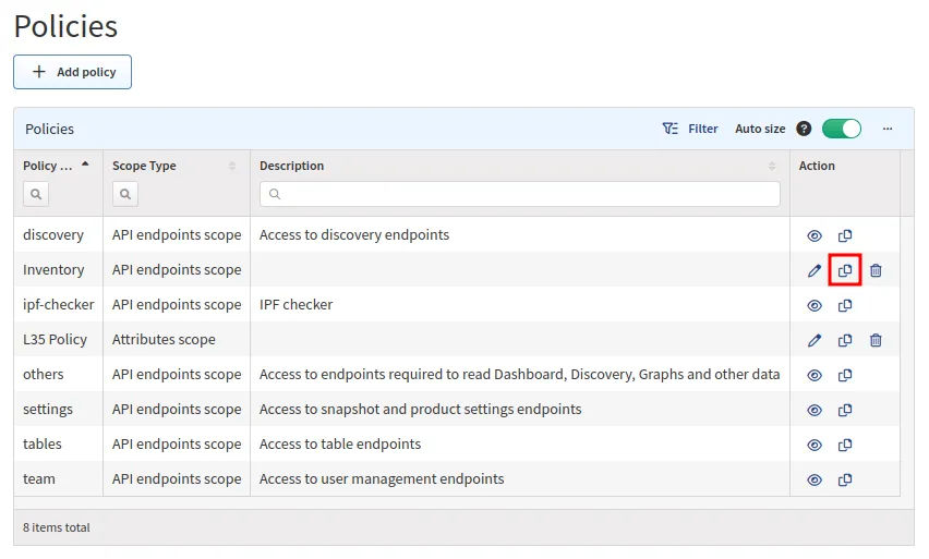 To copy a policy, click the Copy icon next to it in the