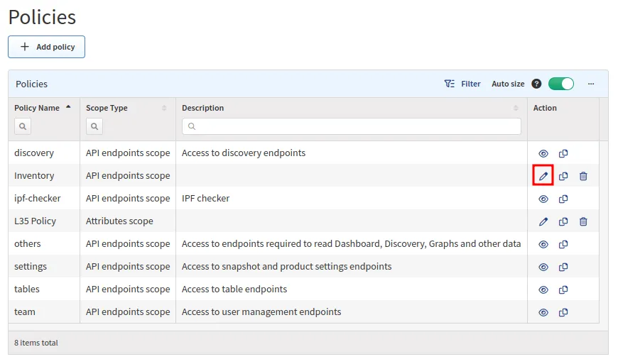 To modify the details of a policy, click the Edit icon next to it in the